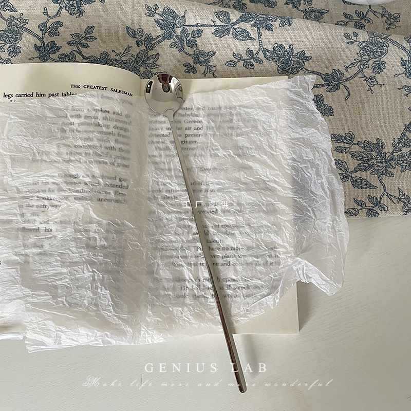 2TCU304 ملعقة قهوة برأس مستدير من الفولاذ المقاوم للصدأ ملعقة حلوى كورية بمقبض طويل وملعقة خلط طويلة وسميكة