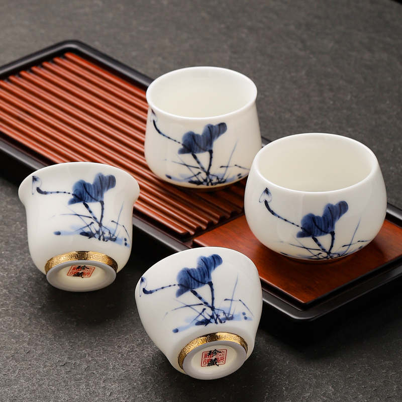 61K3 بدلة فنجان شاي مرسومة باليد طقم شاي الكونغ فو الخزف الأزرق والأبيض حجم صغير كوب دلو كوب شاي سيراميك 6 قطع