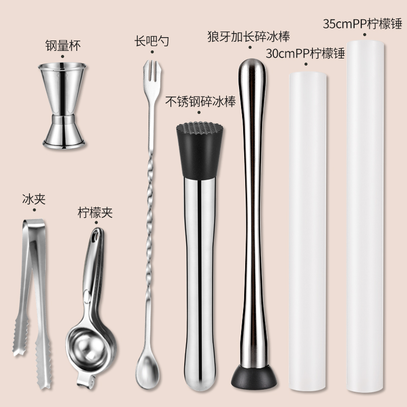 7Y هزة كأس الهزازات دعوى الصلب قياس كوب طويل بار ملعقة مقطع الجليد مقطع الليمون سحق الجليد عصا الليمون مطرقة الملحقات لا شيء