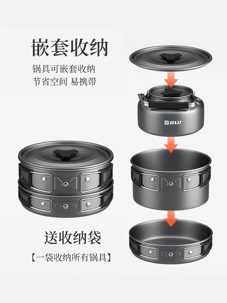 طقم أوعية خارجية S588 غلاية تخييم محمولة معدات التخييم وعاء موقد أدوات المائدة مستلزمات النزهة مجموعة كاملة