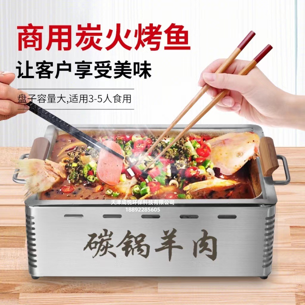 Q683 الفولاذ المقاوم للصدأ سميكة فرن السمك طبق السمك التجاري مستطيلة الفحم المنزلية طبق قهوة كبير وعاء الكربون الجديد الأغنام