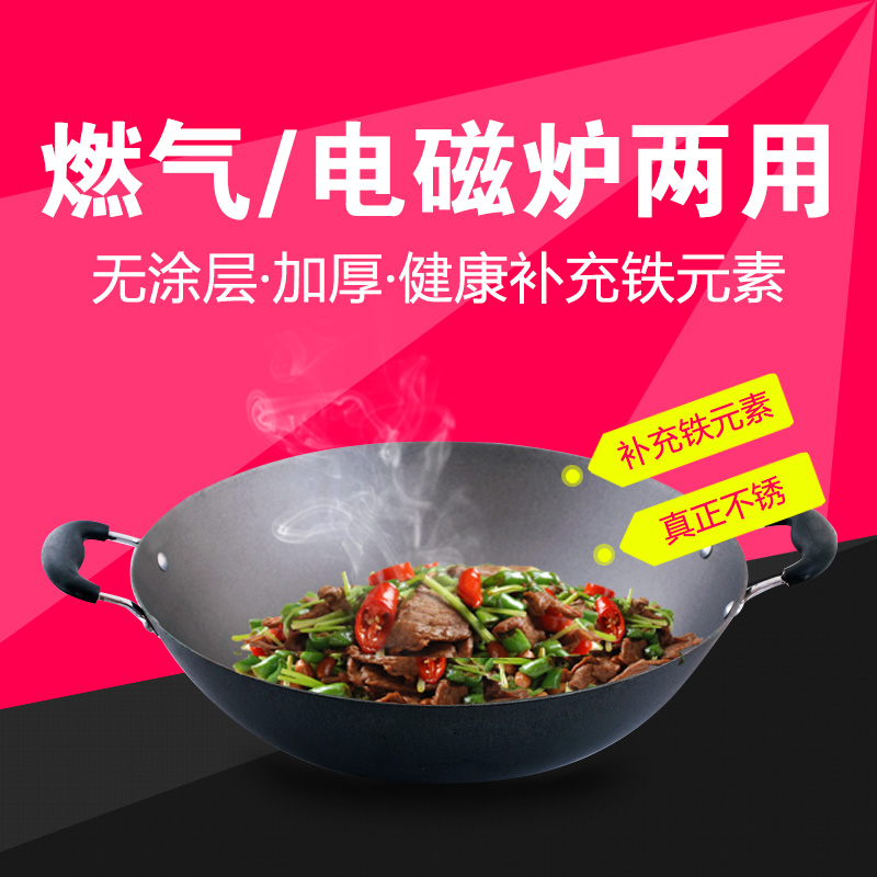 2ts لهب أوزة وعاء مزدوج الأذن مسطحة القاع الماضي الحديد الزهر ووك غير المغلفة المنزلية وعاء حديدي موقد غاز طباخ التعريفي