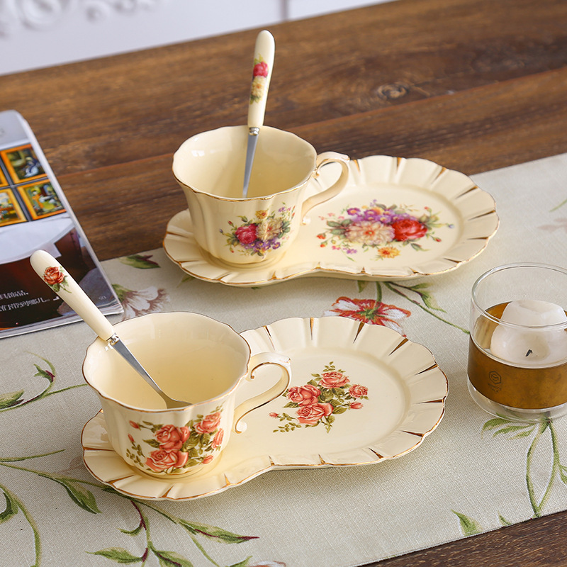 PK7J فنجان قهوة من السيراميك على الطراز الأوروبي وطبق يناسب الشاي البريطاني المعطر بعد الظهر فنجان قهوة منزلي هدية زفاف فاخرة