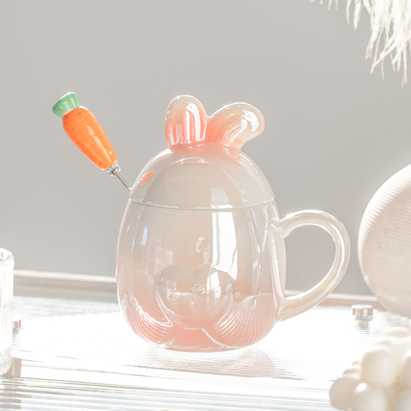 كوب أرنب لطيف مع غطاء وملعقة كوب سيراميك منزلي للفتيات في المكتب وكوب ماء بتصميم متخصص