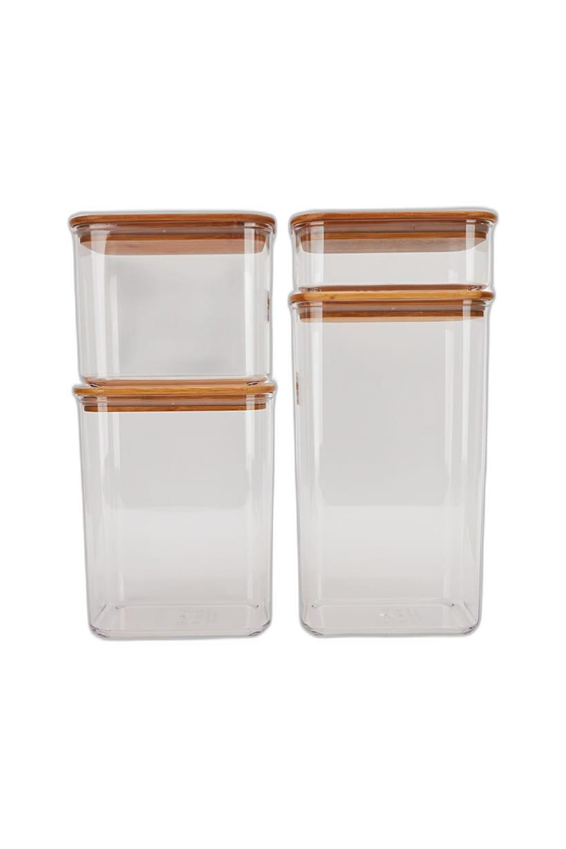 مجموعة علب الخيزران البني والشفاف مع 4 قطع.