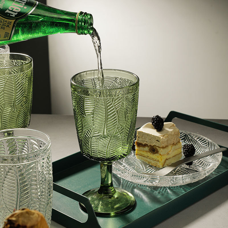 O6AM كأس نبيذ أحمر فرنسي من أوراق الشجر الرجعية للعشاء المنزلي والولائم وعصير النبيذ وزجاج المشروبات الباردة