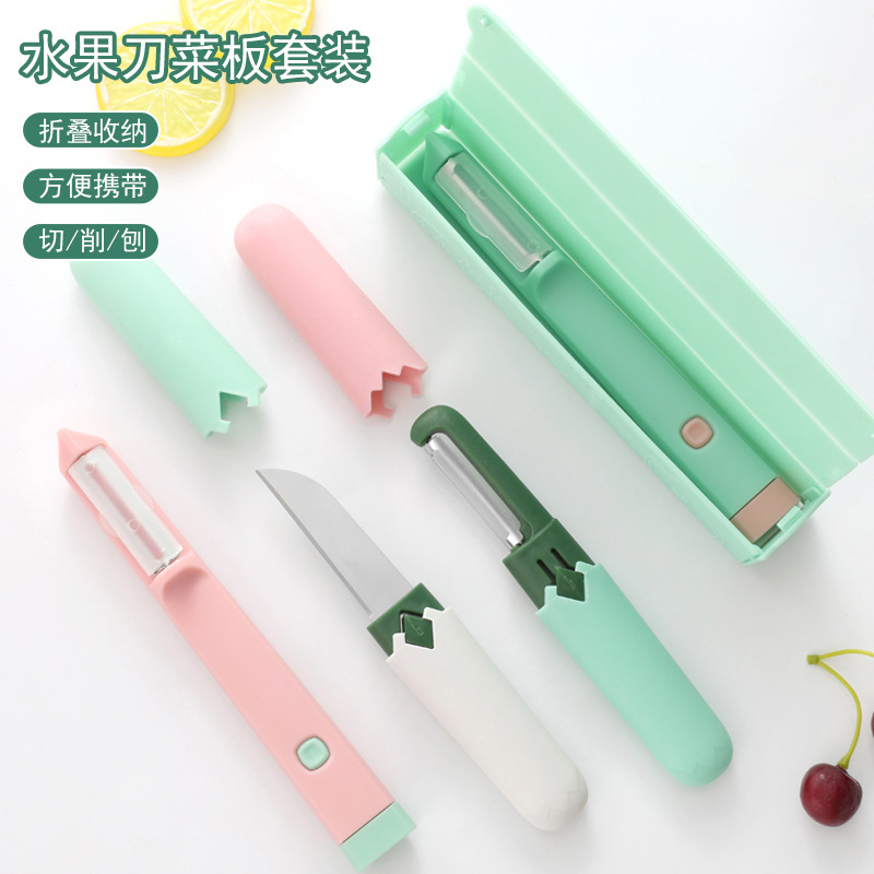 بدلة تقطيع سكين الفاكهة بالجملة مع سكين تقشير محمول متعدد الوظائف مصنوع من الفولاذ المقاوم للصدأ 2 في 1 سكين مقشرة
