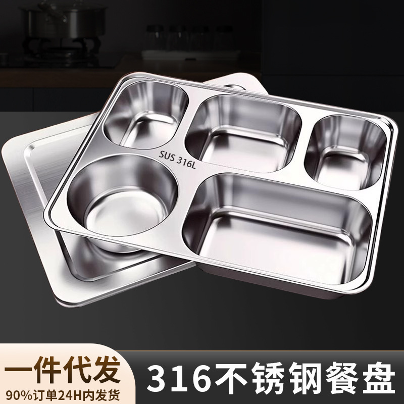 طبق للوجبات السريعة من الفولاذ المقاوم للصدأ بدرجة 316 للطعام، مقسم للبالغين بخمسة أقسام خاصة للبالغين
