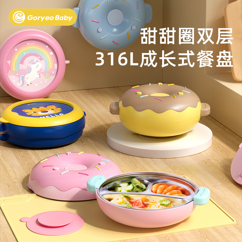 طبق عشاء للأطفال من الفولاذ المقاوم للصدأ من goryeobaby، كوب شفط للأطفال، وعاء لحفظ الحرارة، وعاء مقسم للأطفال، أدوات مائدة تكميلية