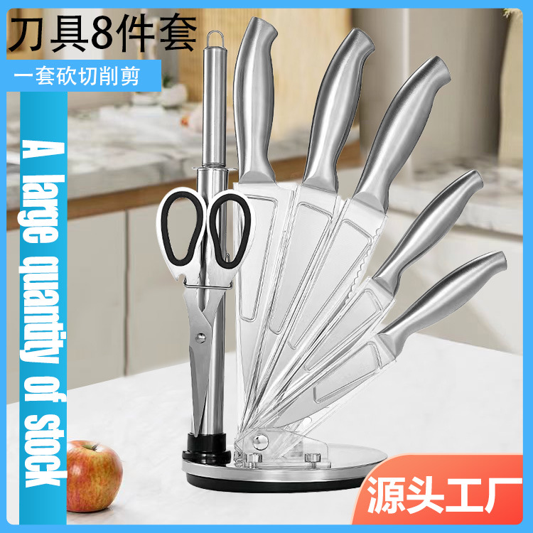 في المخزون التجارة الخارجية الفولاذ المقاوم للصدأ مقبض منقار الطيور مقبض مجوف ثماني قطع سكين مجموعة كاملة سكين المطبخ هدية مجموعة المطبخ جميع الصلب