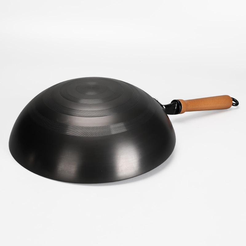 ALJ6 مقلاة حديدية منزلية قديمة الطراز ووك تقليدي مصنوع يدويًا غير مطلي ووك مستدير القاع مقلاة حديدية مطبوخة غير لاصقة