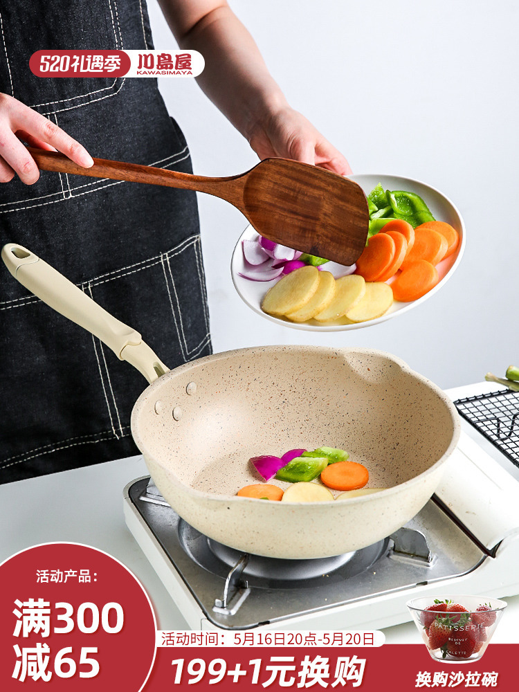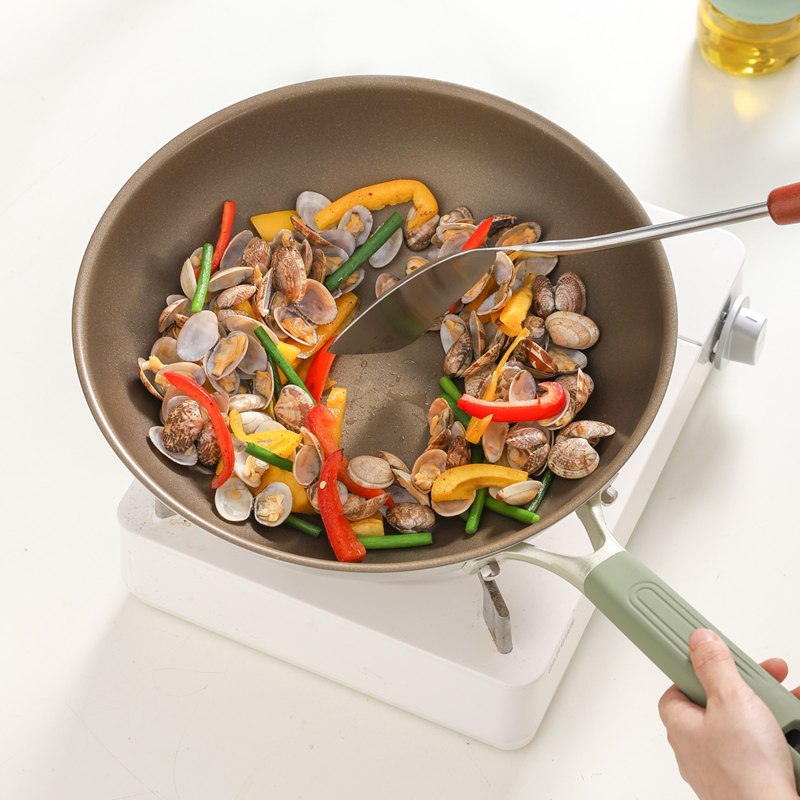 LW96 كاواشيما هاوس مقلاة تيتانيوم غير مطلية غير لاصقة ووك منزلية طباخ التعريفي مقلاة من الفولاذ المقاوم للصدأ تيتانيوم