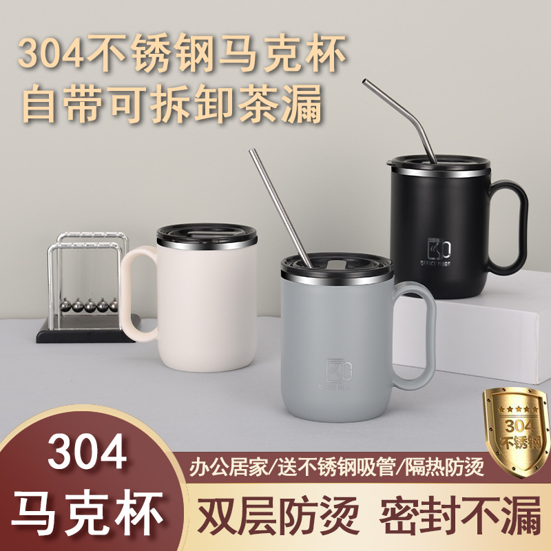 304 كوب من الفولاذ المقاوم للصدأ مع غطاء تمرغ فنجان شاي كوب ماء الشرب المنزلي كوب قهوة عالي الجودة للزوجين