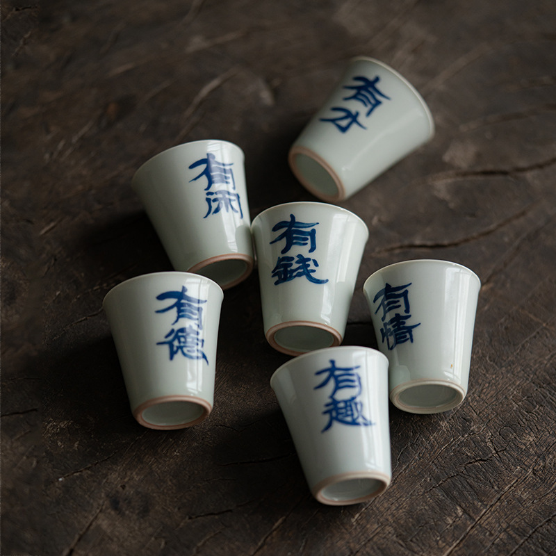 72N الأزرق والزهرة مكتوبة بخط اليد فنجان شاي طقم شاي الكونغ فو السيراميك كوب عطرة مع الترفيه الغنية الأدباء طقم شاي كوب واحد