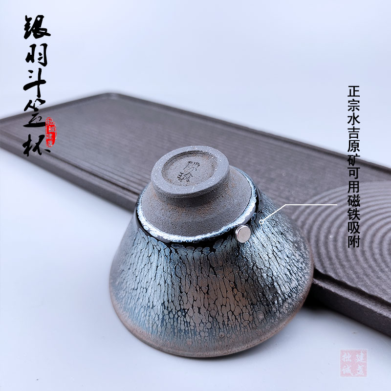 O5Z2 Jianyang الخام الخام Jianzhan الفضة ريشة دلو كوب اليدوية الحديد الإطارات الفضة قطرة الزيت الحجل بقعة ماستر كوب طقم شاي الشاي