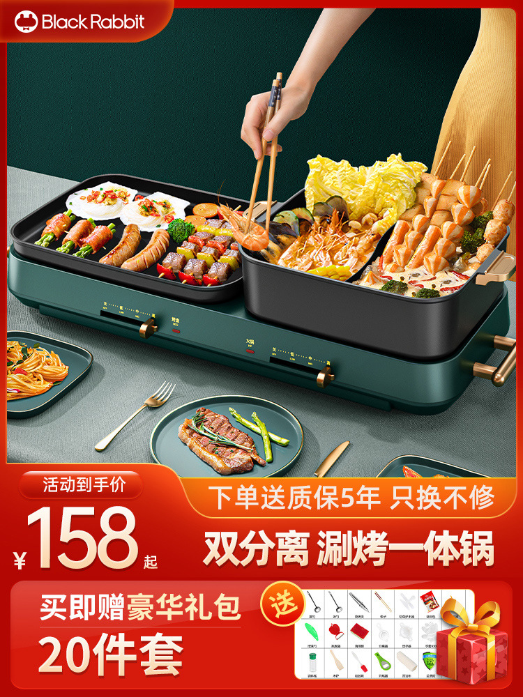 XEI3 وعاء ساخن مقلي متعدد الوظائف الكل في واحد فرن شواء كهربائي منزلي غير مدخن طبق لحم قابل للفصل ثنائي الاستخدام