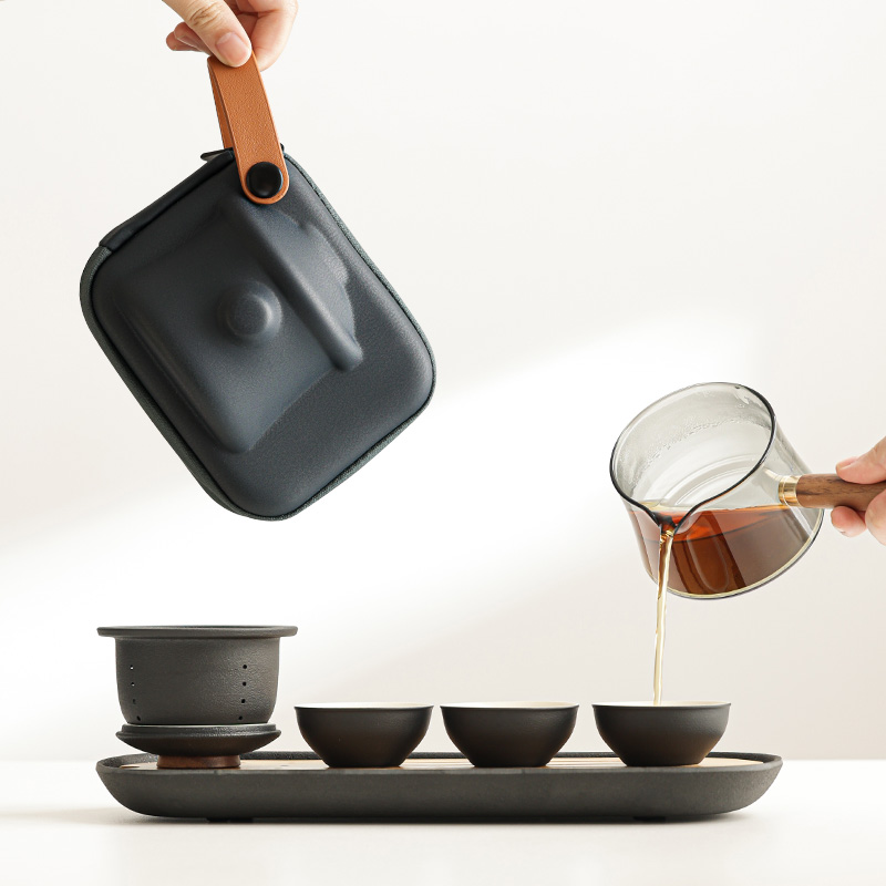 LW96 طقم شاي للسفر قابل للحمل في الهواء الطلق ومقبض جانبي مضاد للحرق إبريق شاي من السيراميك كوب سريع للتخييم