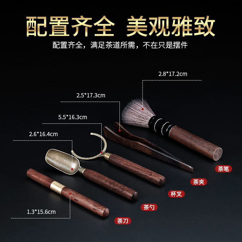 R9DC حفل الشاي ستة السادة طقم شاي الكونغ فو لوازم الملحقات دعوى الأبنوس الخشب الصلب سكين الشاي مشبك الشاي فرشاة أدوات صنع الشاي