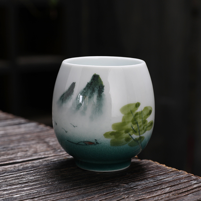 61K3 السيراميك رسمت باليد ماستر كوب كوب واحد طلاء حبر صيني نمط فنجان شاي الشاي الشاي الشاي أرهات كوب الكونغ فو فنجان شاي كبير