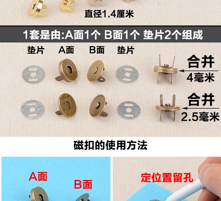 أزرار مغناطيسية مغناطيسية خالية من التماس، إكسسوارات الأمتعة المصنوعة يدويًا، أبازيم مخفية، أبازيم مغناطيسية، أبازيم شفط، ملحقات حقيبة ذهبية للفم الحجري الممتص للحديد