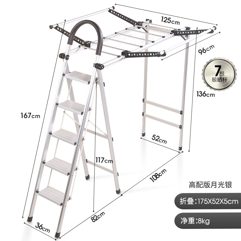 رف تجفيف الملابس تلسكوبي، سلم قابل للطي للشرفة قائم على الأرض
