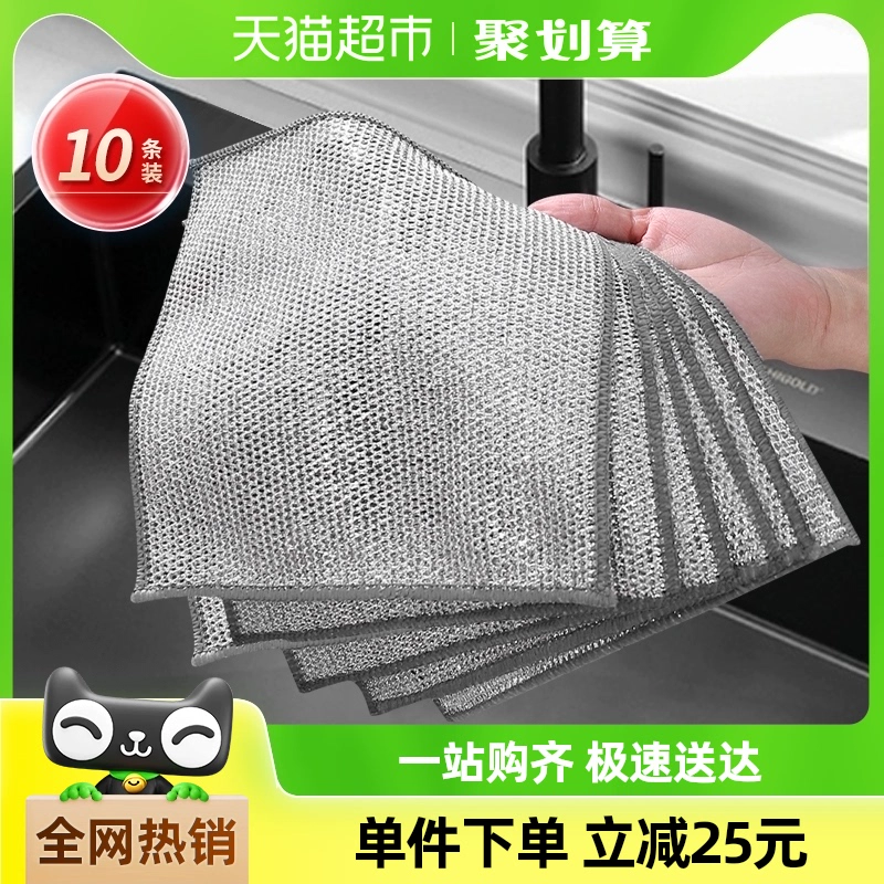 خرقة تنظيف منزلية بطبقة مزدوجة للمطبخ، 10 قطع كرات صوف فولاذية