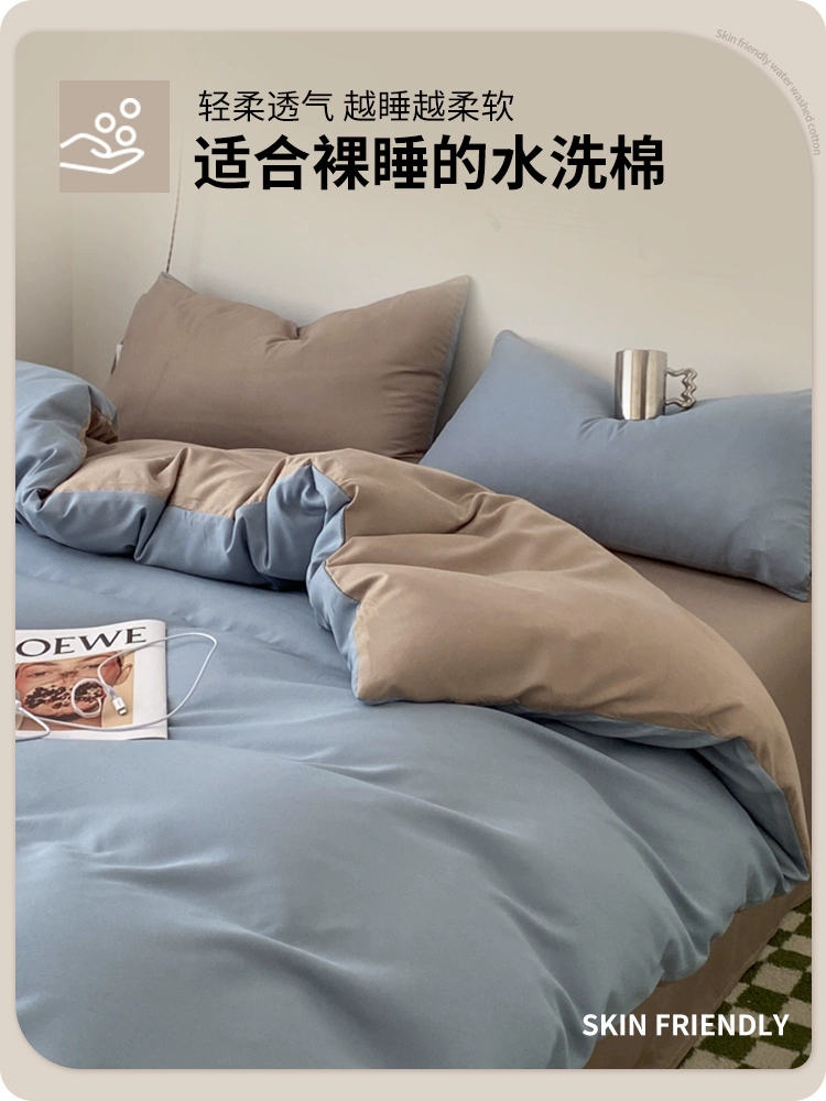 غطاء لحاف صيفي قطعة واحدة 150 × 200 × 230 غطاء لحاف فردي من القطن الخالص غير القطني لحاف الطالب المغسول من القطن 3