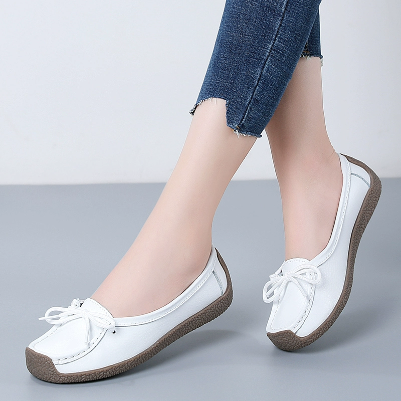 حذاء Doudou ذو الفم الضحل باللون الأبيض مريح وغير قابل للانزلاق للأشخاص في منتصف العمر وكبار السن