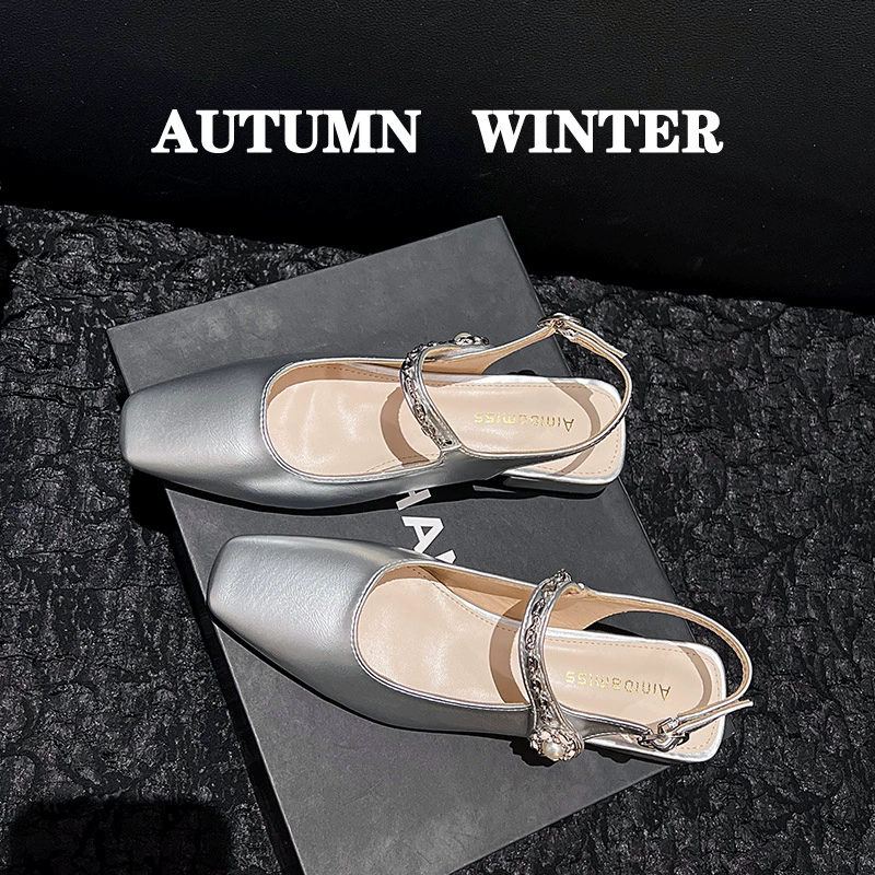 شبشب نصف مطوي مسطح بمقدمة قدم فضية على الطراز الفرنسي