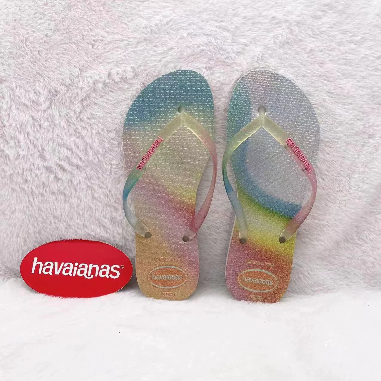 24 شبشب هافانا البرازيلي للنساء هافاياناس نحيف لامع وأشرطة رفيعة مسطحة القاع للشاطئ مانعة للانزلاق