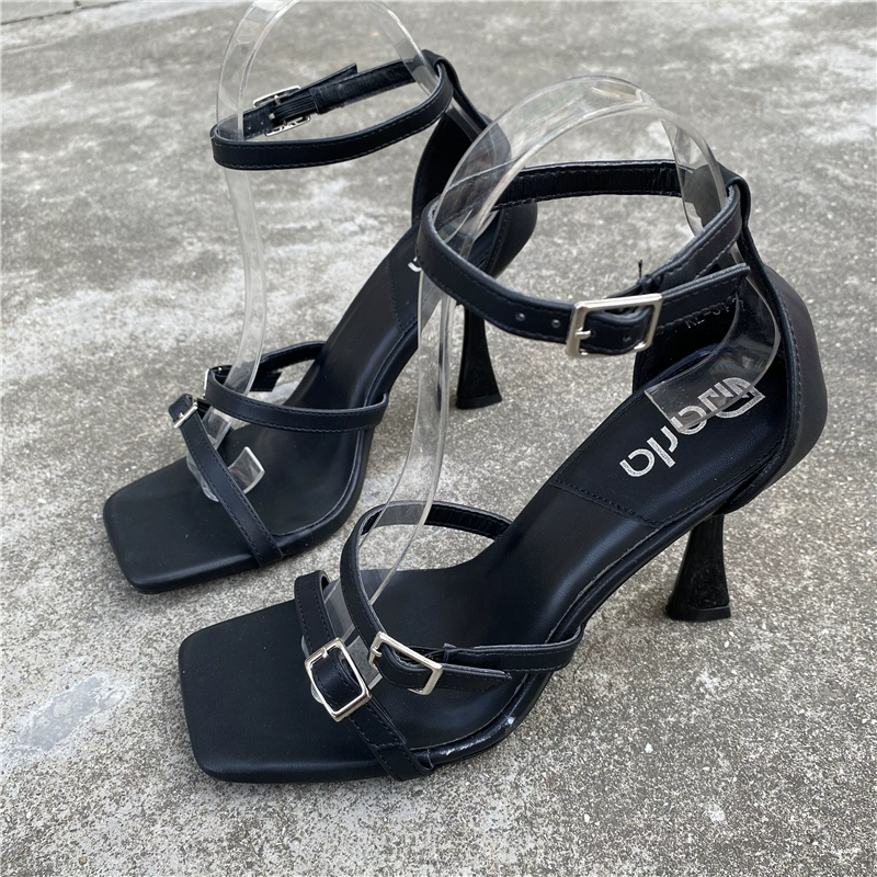 التجارة الخارجية أحذية بكعب عالي للنساء 2023 صيف جديد sw أسود بكلمة واحدة حزام خنجر مثير المتخصصة نمط الجنية الصنادل