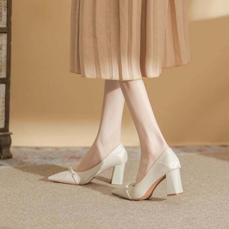 أحذية السيد وي ذات الكعب العالي للنساء، أحذية فردية بكعب سميك للنساء، أحذية وصيفة العروس بيضاء للنساء، ملابس يومية، أحذية زفاف للنساء، أحذية الزفاف