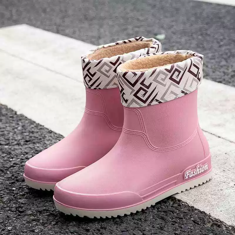 حذاء نسائي ياباني مقاوم للماء من قطعة واحدة مخملي دافئ للمطر