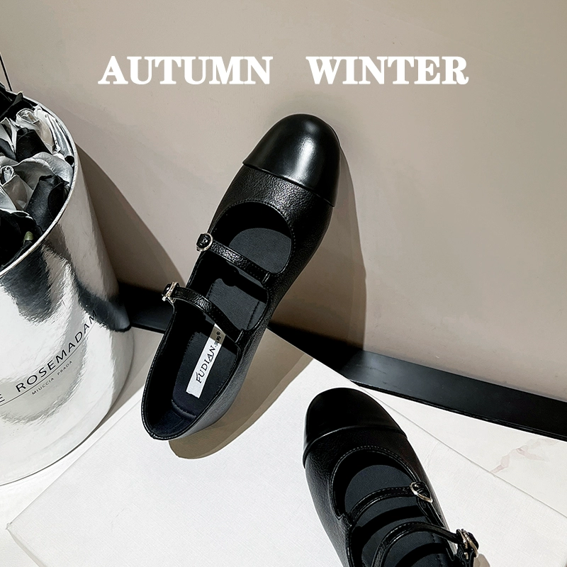 حذاء ماري جين فرنسي صغير بكعب عريض وحزام واحد