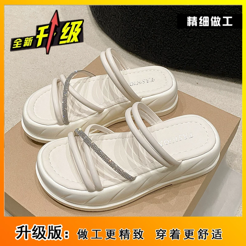 نعال منصة أنيقة من حجر الراين لارتدائها على الشاطئ