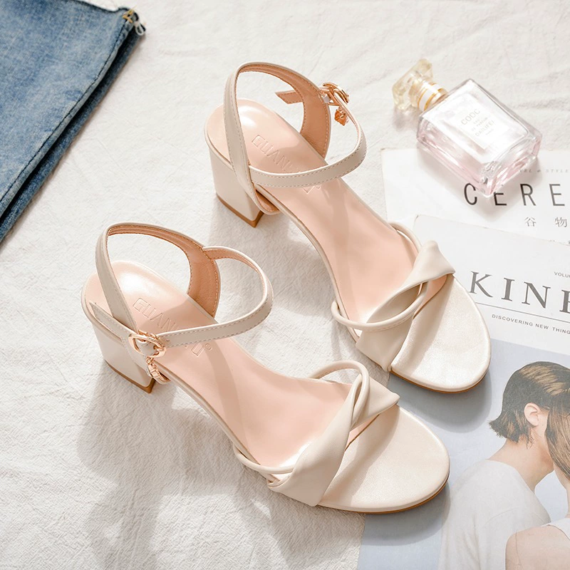 كلمة واحدة على الطراز الكوري الأنيق بكعب سميك كاجوال ونعال عصرية