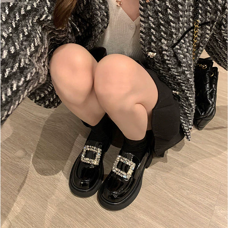 حذاء بدون كعب سميك ذو إبزيم مربع من حجر الراين البريطاني 41-43