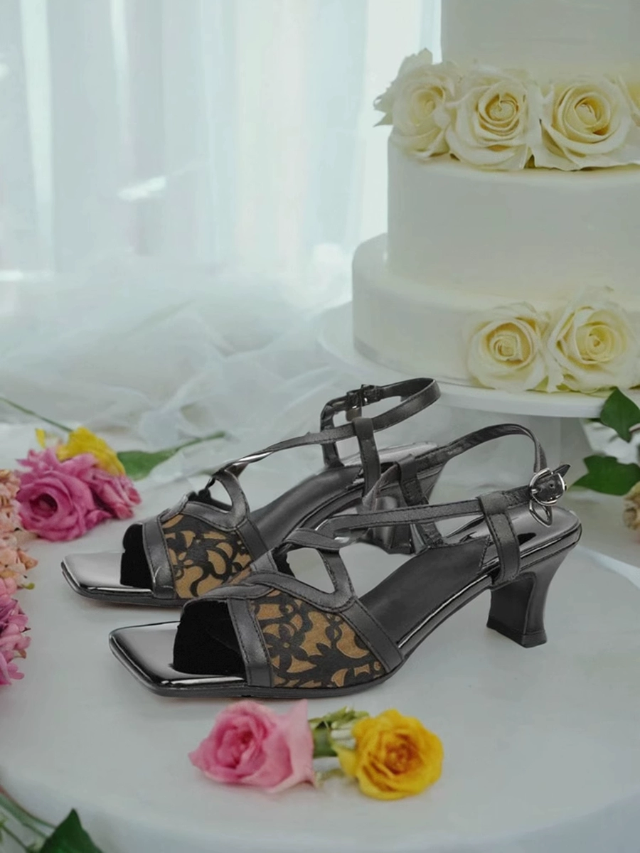 صندل بكعب سميك باللون الأسود الخيالي للربيع والصيف