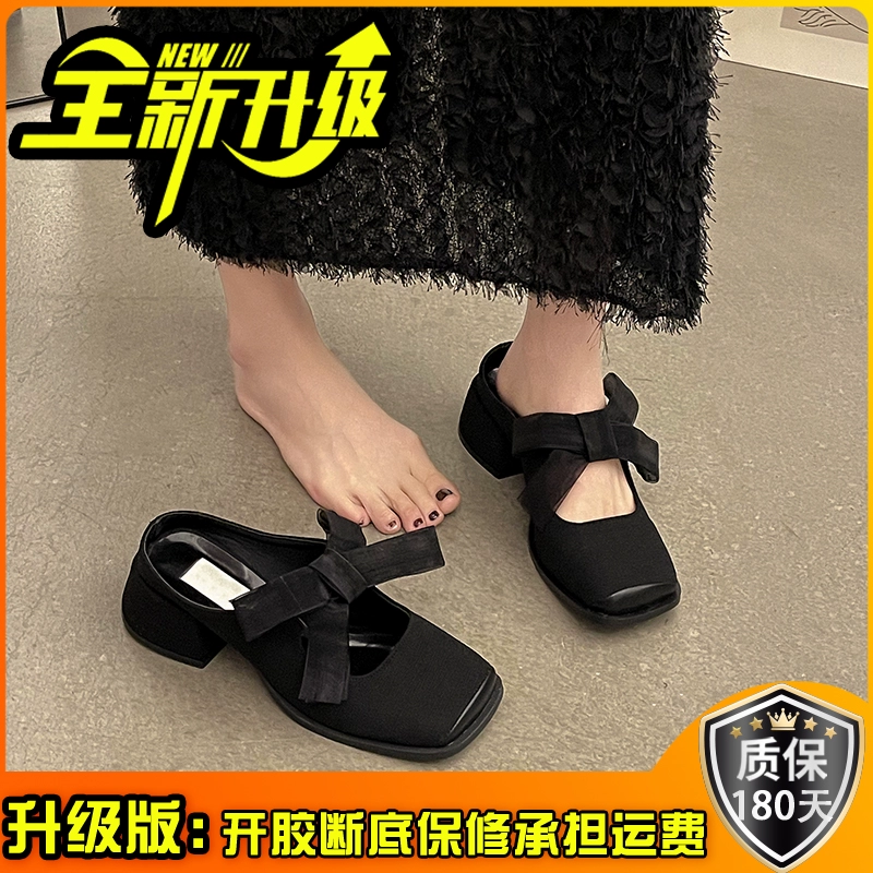 أحذية باوتو ذات الطراز الصيني الجديد الخيالية بكعب سميك على الطراز الصيني نصف السحب
