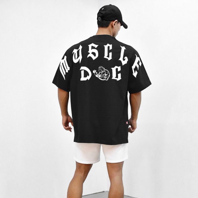 تي شيرت رياضي قصير برسومات شعار جذابة.