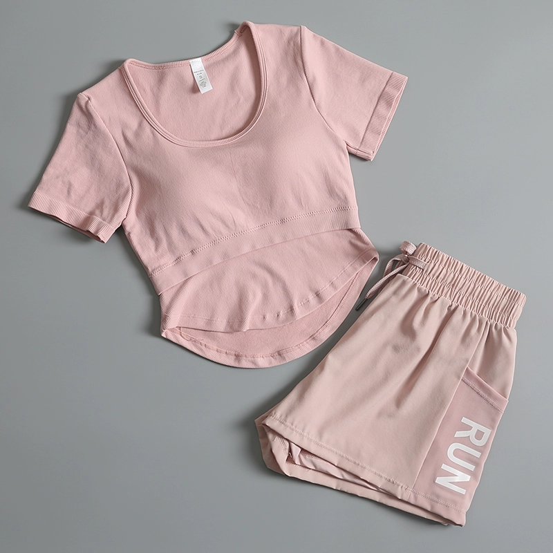 شورت رياضي بدون خياطة بعقب سكرانش (قطعتان)