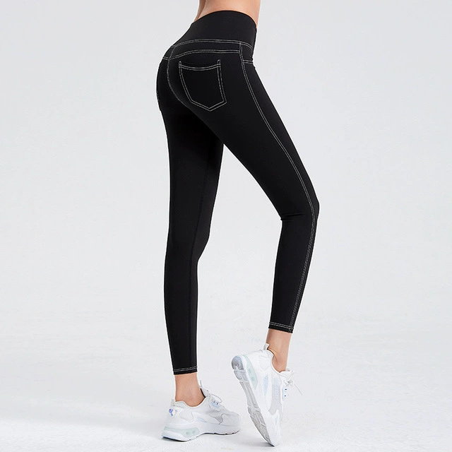 بنطلون يوجا مقاس كبير من قماش الدنيم عالي الخصر قابل للتمدد للياقة البدنية