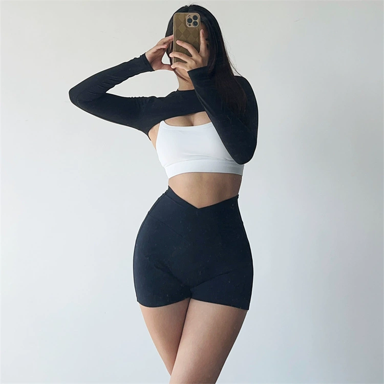 تي شيرت رياضي للفتيات للياقة البدنية بأكمام قصيرة مكون من قطعتين مع وسادة صدر، ملابس يوجا قصيرة عصرية قابلة للتنفس، مثيرة