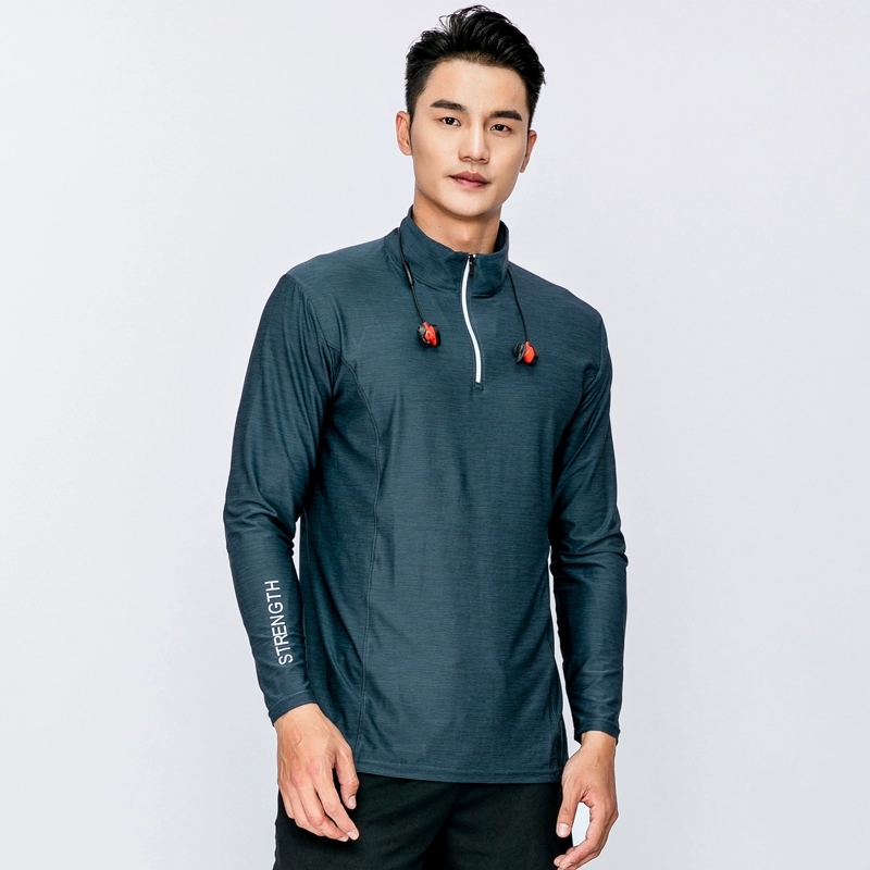 قميص رياضي رجالي بأكمام طويلة وياقة واقفة ويمتص العرق ويمتص العرق