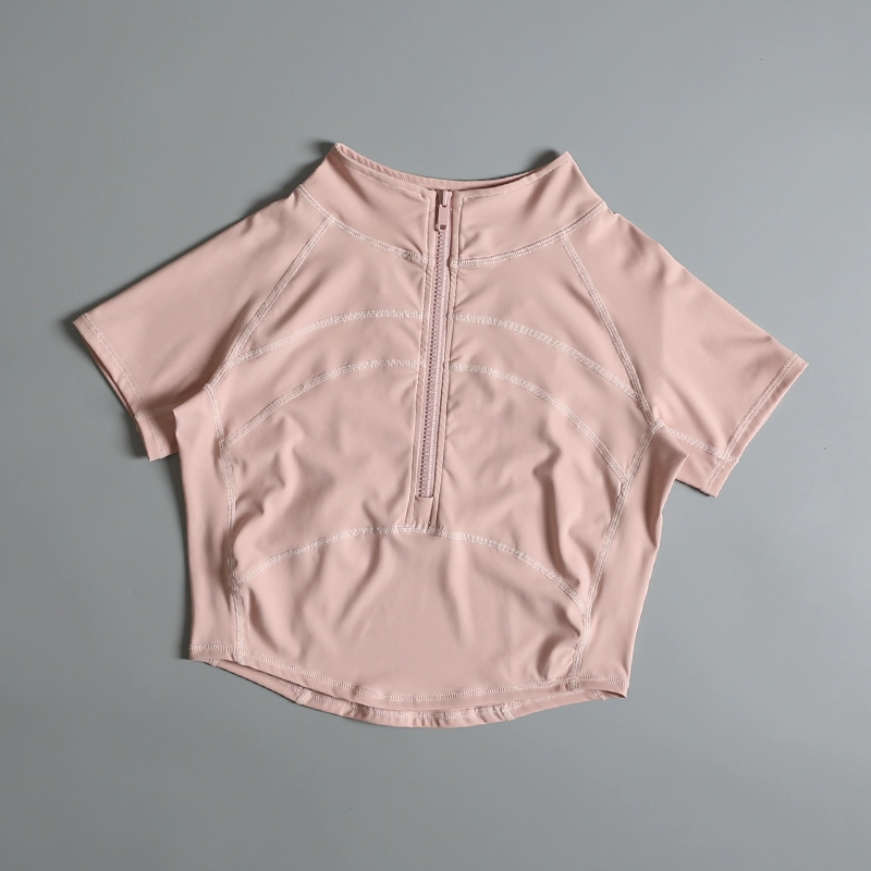 ملابس يوجا نسائية نصف سحاب ضيقة وأكمام قصيرة