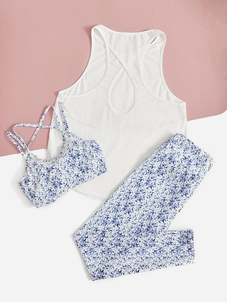 طقم رياضي جيد التهوية مع تي شيرت بدون أكمام بطبعة جرافيك.