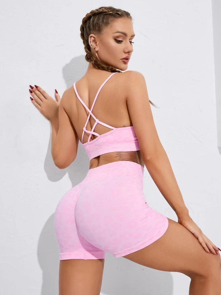 طقم رياضي بدون ظهر مع أحزمة متقاطعة وحزام خصر عريض.
