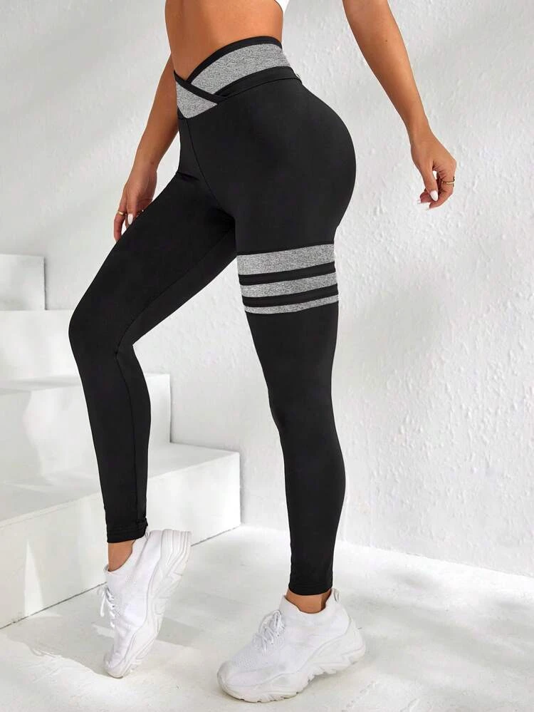بنطال رياضي بحزام خصر عريض وطباعة مخططة.