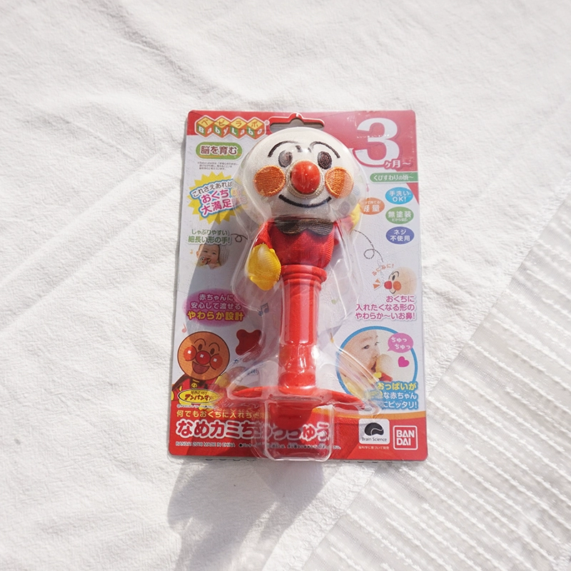 دمية خشخيشة يدوية من السيليكون للتسنين باللون الأحمر من الخبز