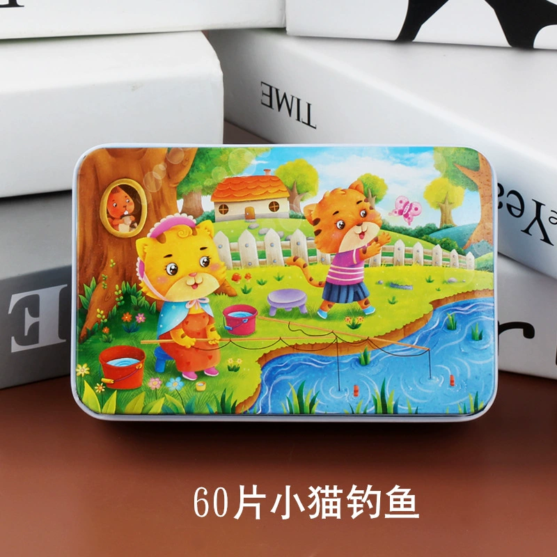 أحجية الصور المقطوعة للأطفال فوق 6 سنوات، صندوق حديد تعليمي، ألعاب خشبية كرتونية للبنات، جزيئات طويلة، مكعبات بناء للأولاد والبنات